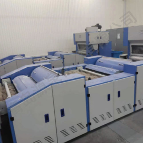 本机主要对山羊绒、绵羊绒、牦牛绒、驼绒、羊驼毛等动物纤维进行开松、梳理。 采用双给棉板、双刺辊、双锡林、双道夫的梳理排列,节省设备摆放空间,使其去粗、去杂、去皮屑的效果最大化,是分梳生产线中必备产品之一。