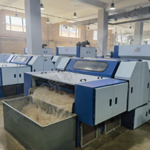 本机开松由双锡林排列,一辊筒软开,二辊筒精开。工作辊与拨毛辊结 合锡林滚筒可达到开松梳理出单纤维且蓬松状态的动物纤维。后辊筒部 分有去粗、去杂效果;分梳行业为最前道工序,效果突出,是联合梳理 机必备产品之一。