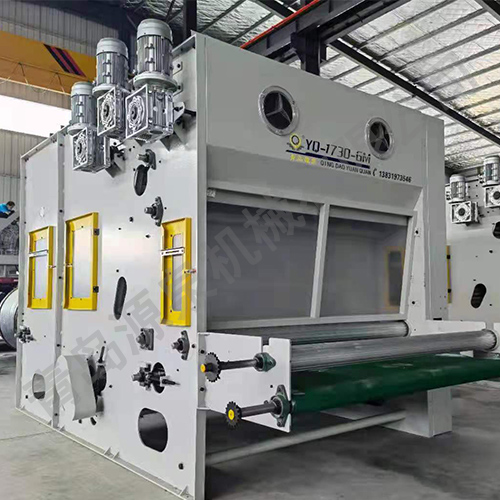 这台机器用于将纤维(开松和混合后)输送到梳理机进行下一道工序。采用容积式定量振动喂入,光电控制,与主开松光电联动,给棉量更加均匀准确。