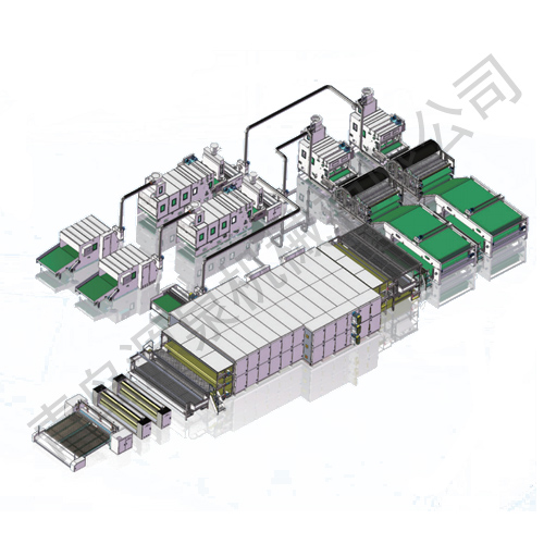 喷胶棉设备主要生产高弹喷胶棉、仿丝棉。热熔、材等上胶、烘干、定型之用、设置前后(正反)喷胶,三层烘燥工作区。该产品广泛应用于服装、床上用品、家具等。该生产线可根据客户需求定制不同配置的生产线,如头喷胶棉生产线,多机头喷胶生产线等。